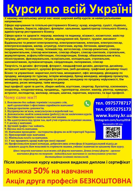 Сфера краси та здоров’я: перукар, манікюр та педикюр, візажист, косметолог, майстер татуажу, дієтолог, психолог, татуаж, нарощування вій, бровіст, грумінг, масажист